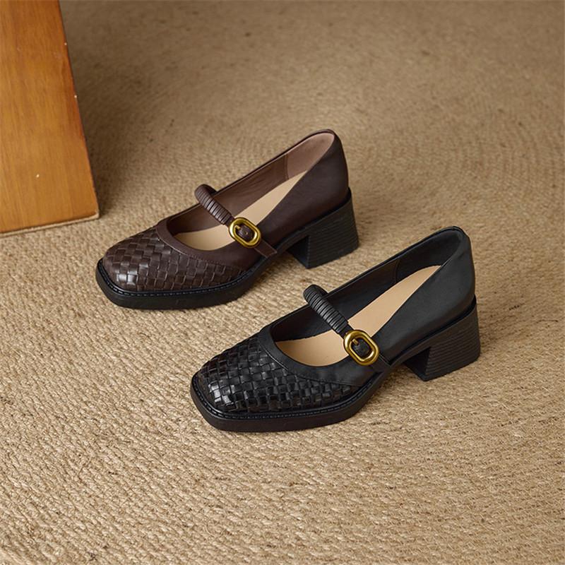 Fashion New Spring/autumn Genuine Leather Women Shoes Square Toe Mary Jane Shoes for Women Fashion Retro Chunky High Heels Women Pumps