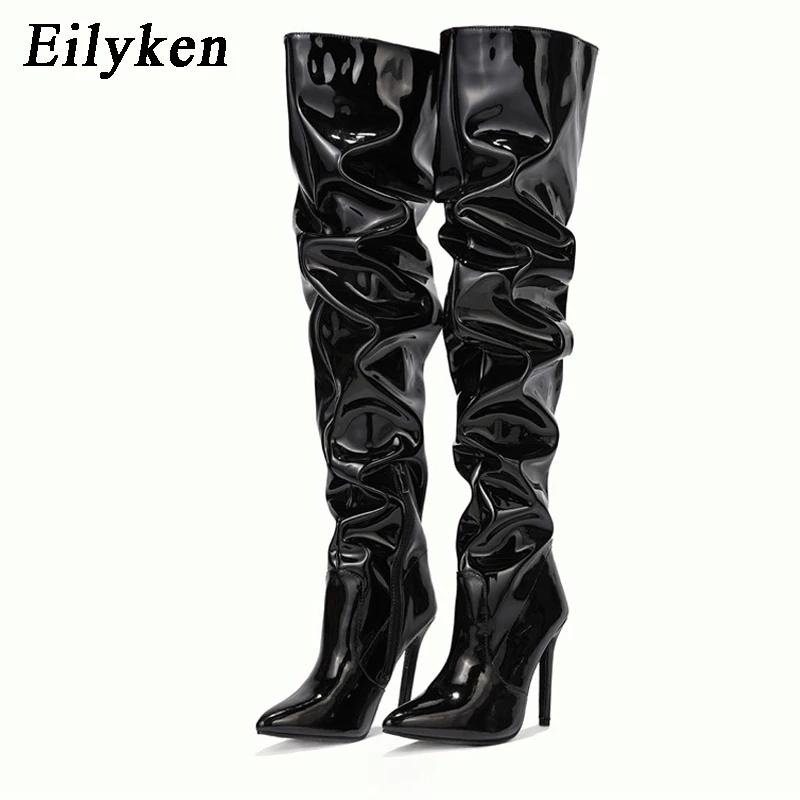 Fashion Eilyken Red Women Over The Knee Boots High Heels Patent Leather Solid Pointed Toe Stiletto Side Zipper Sapatos Femininos