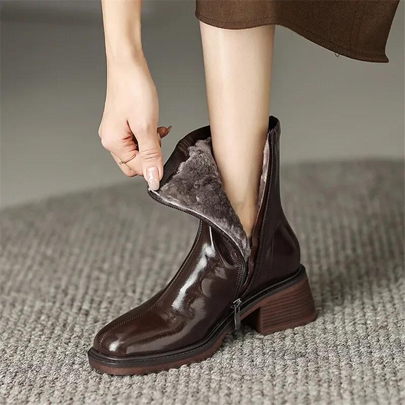Fashion New Winter Boots for Women Autumn Short Boots Square Toe Chunky Heel Women's Warm Wool Boots Platform Shoes High Heels Shoes
