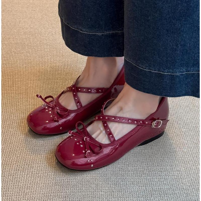 Fashion 2025 Spring Autumn Round Toe Bow Leather MaryJane Flats New Fashion Cross Strap Shoes Shallow Mouth Solid Color Women's Loafers