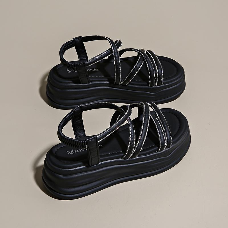 CRLAYDK Women's Sandals Cross Strap Elastic Band Slides for Summer Walking Ladies Open Toe Platform Beach Travel Slippers