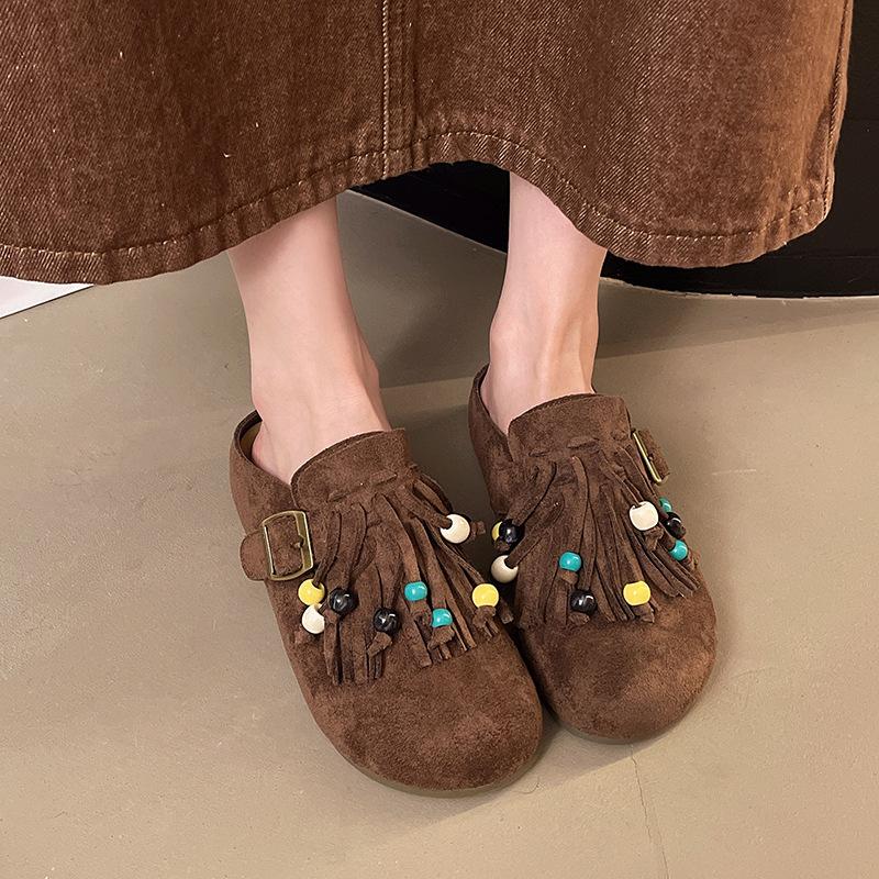 Baotou slippers new platform beaded 2025 autumn retro Boken shoes half a pack of cool slippers outer slippers