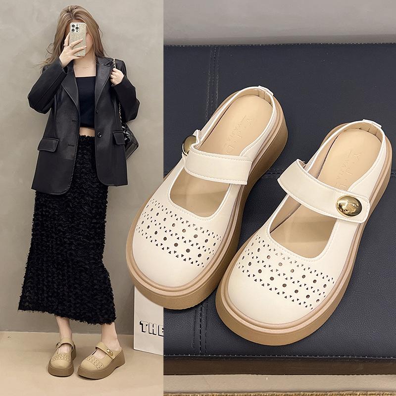 Foreign trade sandals women's 2025 summer new British style casual small leather shoes thick-soled round head comfortable soft-soled mother shoes