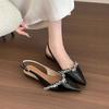 2025 new pointed head shallow mouth single shoes women's flat shoes female temperament celebrity with skirt rhinestone bag head sandals women's summer