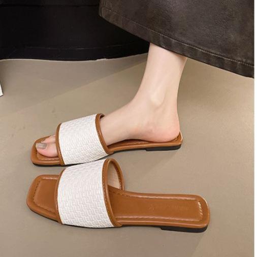 Slippers women's summer wear 2025 new French temperament with skirt one-word drag flat-bottomed non-slip beach cool slippers