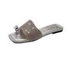 French silver slippers women's summer wear 2025 new with skirt fashion rhinestone cover toe flat bottom beach cool slippers