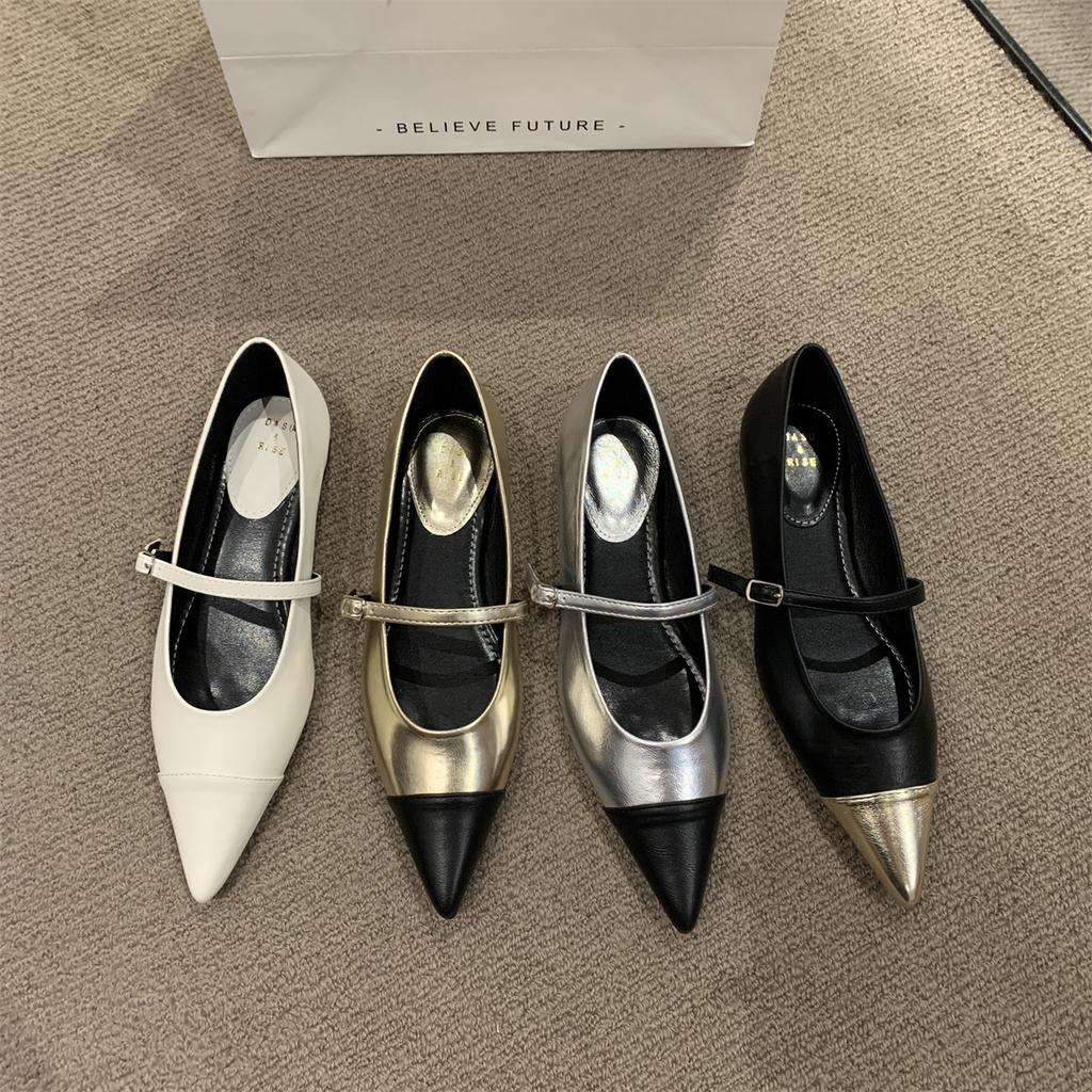 Fashion Flat Shoes for Women Spring Autumn Mary Jane Shoes New Flat Pointed Toe Shallow Silver Casual Plus Size Women's Shoes Ladies