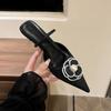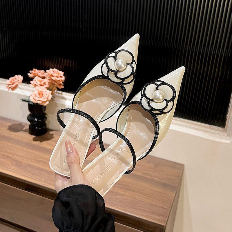Baotou sandals women's summer 2025 new French pearl flowers pointed thin heels empty slippers are not tired of high heels