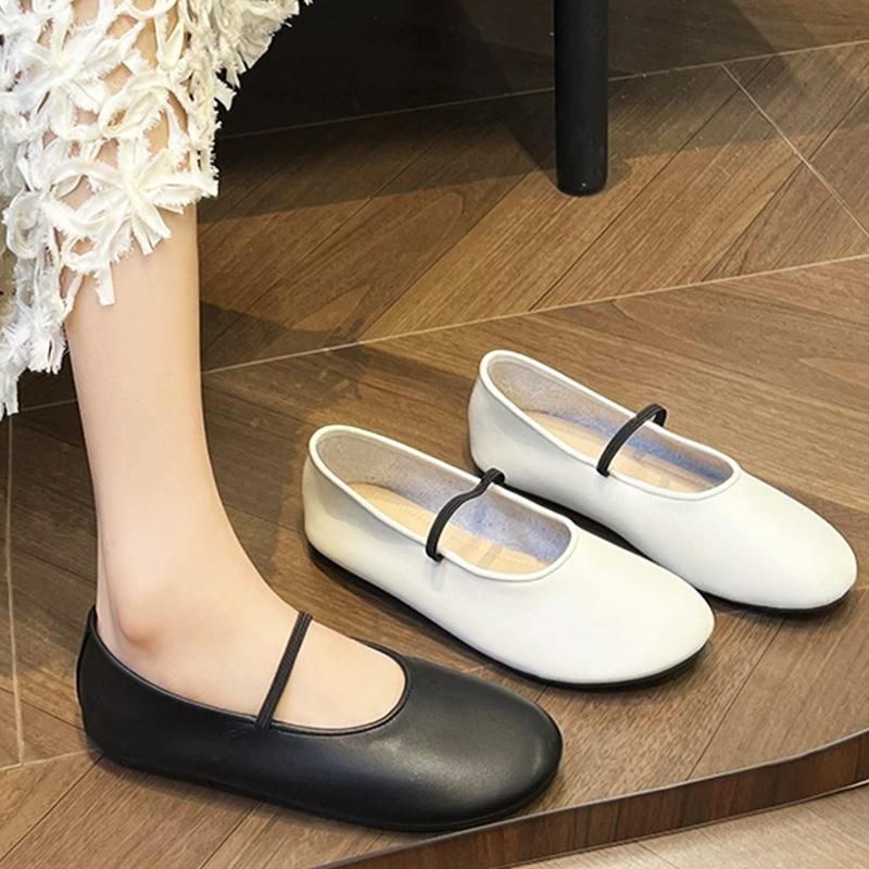 One-word leather soft-soled Mary Jane single shoes women's small heels ballet shoes small leather shoes ladyshoes
