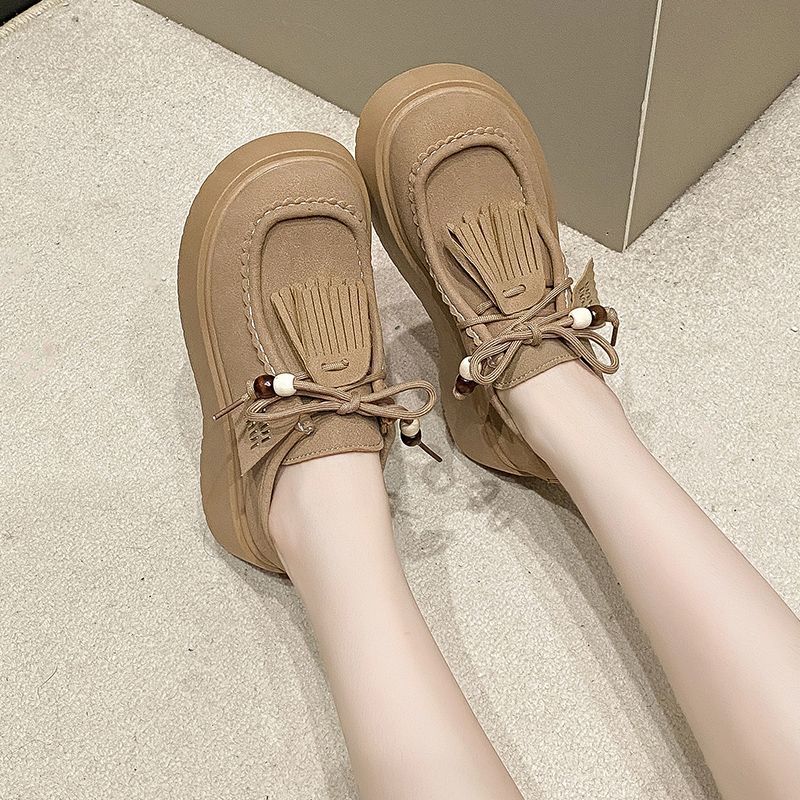 Versatile casual round head lace-up single shoes women's spring and summer new heightened platform muffin fringed Birken women's shoes