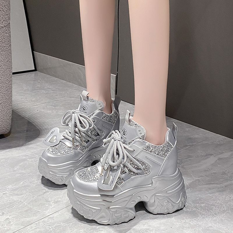New dad shoes breathable women's new mesh autumn heightening sports and leisure shoes white silver