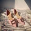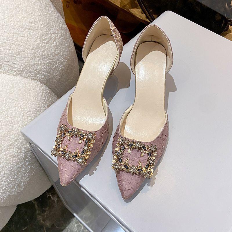 Fashion temperament celebrity women's high heels spring and summer new small fragrant style square buckle pointed single shoes high heels women