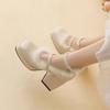 Autumn and winter velvet French fairy one-word buckle high heels women's thick heel bridesmaid shoes medium heel fluffy Mary Jane single shoes