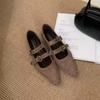 French retro pointed Mary Jane shoes women's new suede flat shoes with skirts versatile small leather shoes