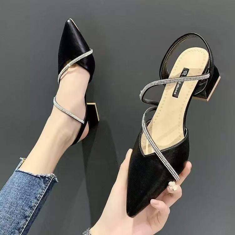 Fairy style with skirt sandals female summer new thick heel medium heel bag head high heel versatile fashion women's shoes