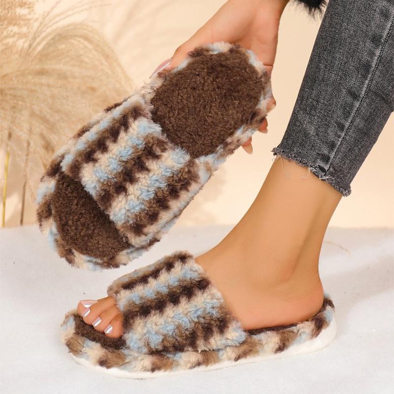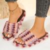 Fashion Retro Soft Bottom Cotton Slippers Women 2025 Striped Mix Color Women's Cotton Slippers Open Toe Slip On Plush Slides Mujer