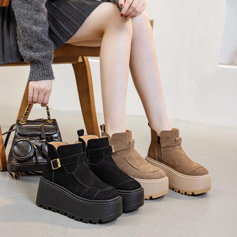 Platform short boots women's Korean version 2025 autumn and winter new solid color round head muffin shoes simple fashion versatile tide