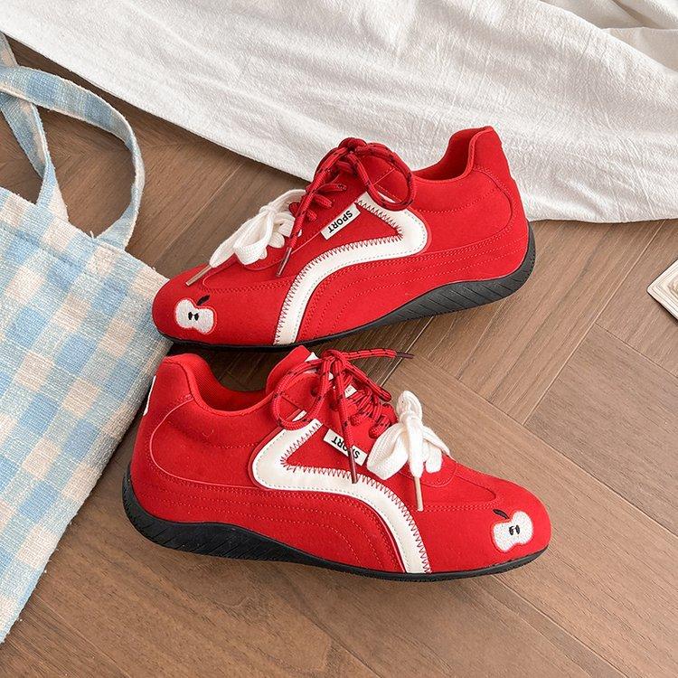 2025 new retro Dexun shoes versatile flat casual shoes women's sports board shoes 5cm breathable red