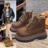 Vintage thick-soled lace-up Martin boots women's 2025 autumn new fashion tooling rhubarb boots Maillard short boots