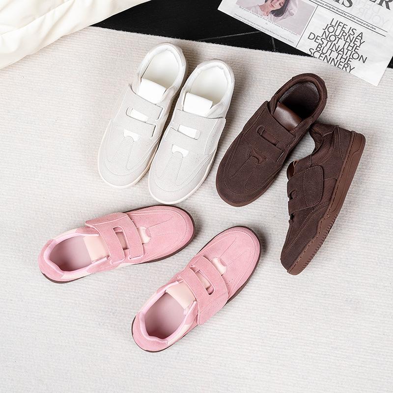 Cowhide version of Korean niche leather Velcro round head German training shoes women's leisure sports style flat bottom versatile German training s