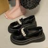 British style small leather shoes women's spring new French pearl with skirt round head muffin platform loafer single shoes