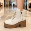 thick-soled soft leather Martin boots women's autumn and winter thick heel increases height and looks thin, fashionable and versatile temperament