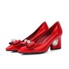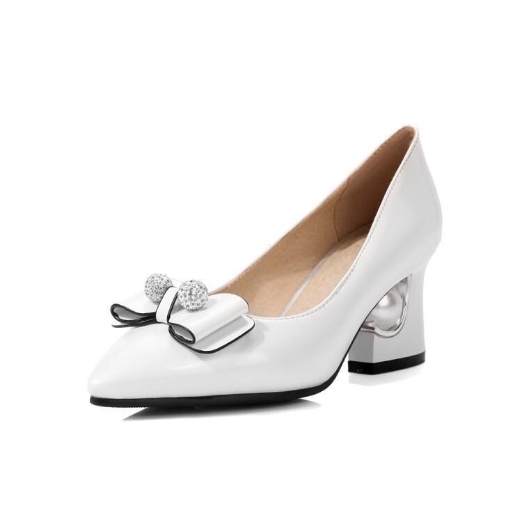 Spring, summer and autumn new sweet bow middle heel single shoes women's sexy pointed rhinestone thick heel shoes