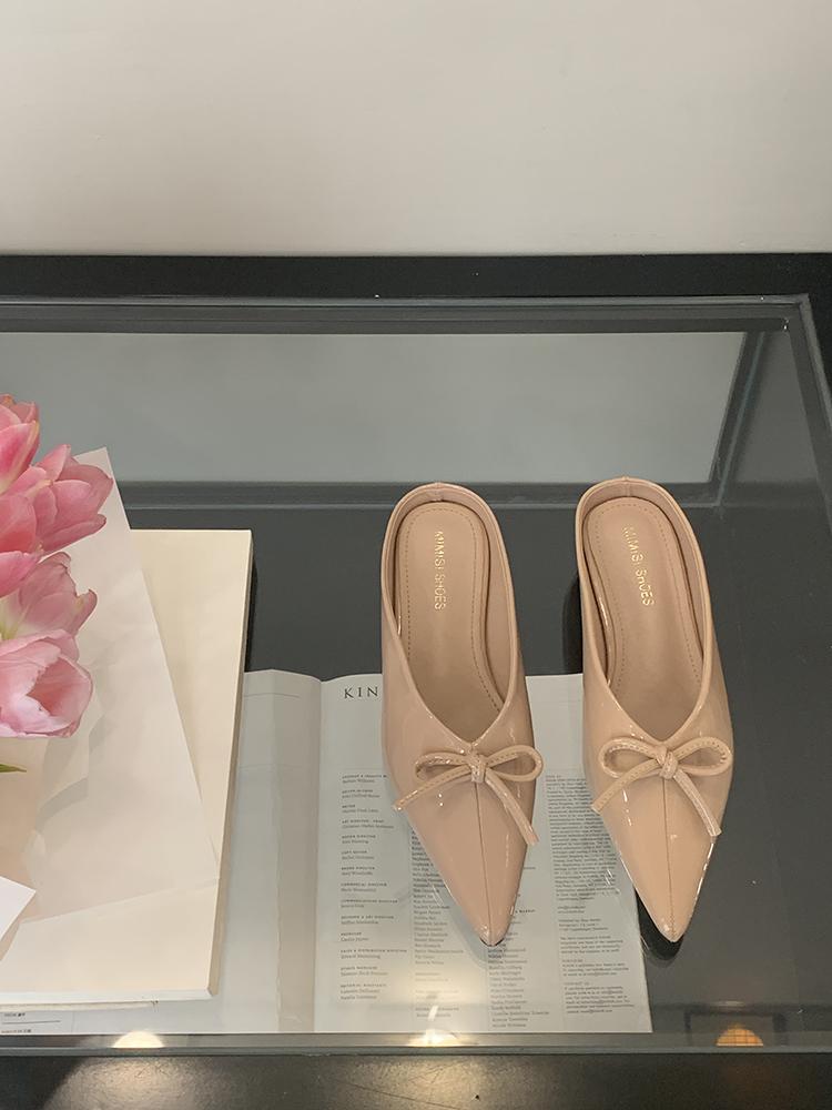 Female Pointed Toe Footwear New 2025 Pumps Women Low Heel Shoes Mules Butterfly-Knot Shallow Ladies Heel Shoes Slides