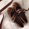 IPPEUM Red Velvet Ballet Flats Shoes Round Toe Bow Ballerinas Zapatos Mujer Women Mary Janes