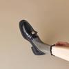 French retro British style thick heel loafers women's soft leather one-pedal camellia small leather shoes spring and autumn single shoes middle heel