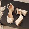French sandals spring 2025 new popular new Chinese bow high heels temperament leather shoes fairy single shoes woman
