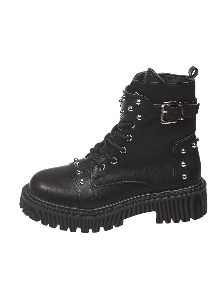 2025 Women's Fashion Boots round Toe Platform Sole Lace-up Rivet Short Boots New Punk Style All-match Autumn Winter Women Boots
