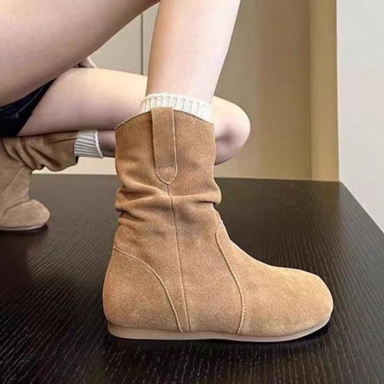 Women's shoes niche design sense retro stacking boots 2025 new round head flat bottom small short boots popular western cowboy horse