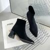 heightening boots autumn and winter French short boots women's thick heel cloth suede small thin boots women's 2025 high heel boots new