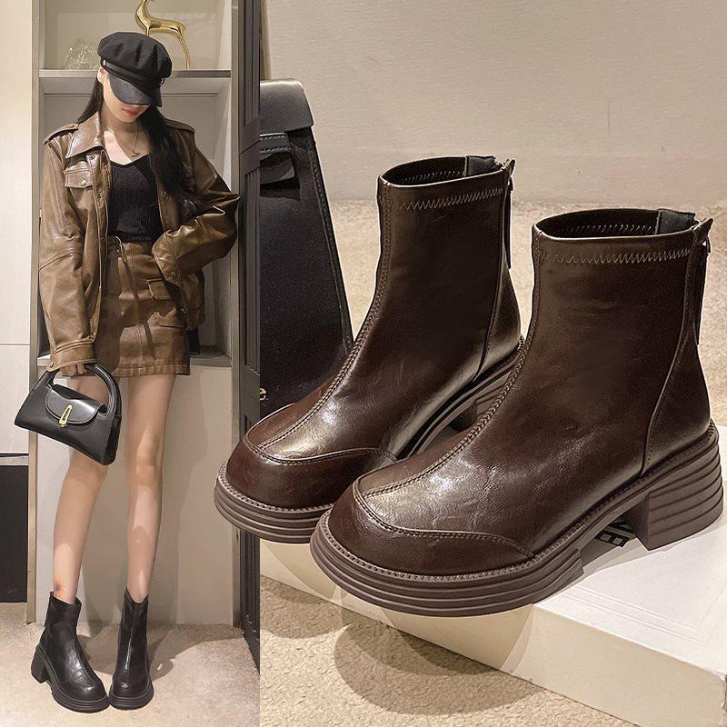 Sub-new Korean version of medium boots thick-heeled short boots and Korean version of autumn and winter knight boots thick-soled Martin boots for wo