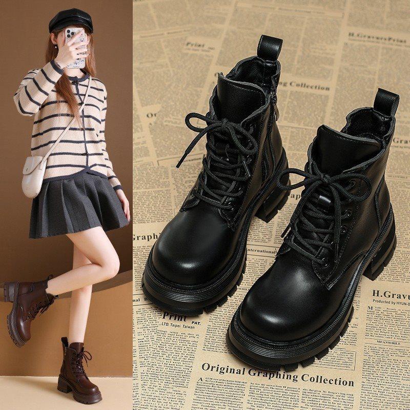 New sub-platform Martin boots women's versatile 2025 locomotive thin boots black autumn and winter single boots lace-up short boots none