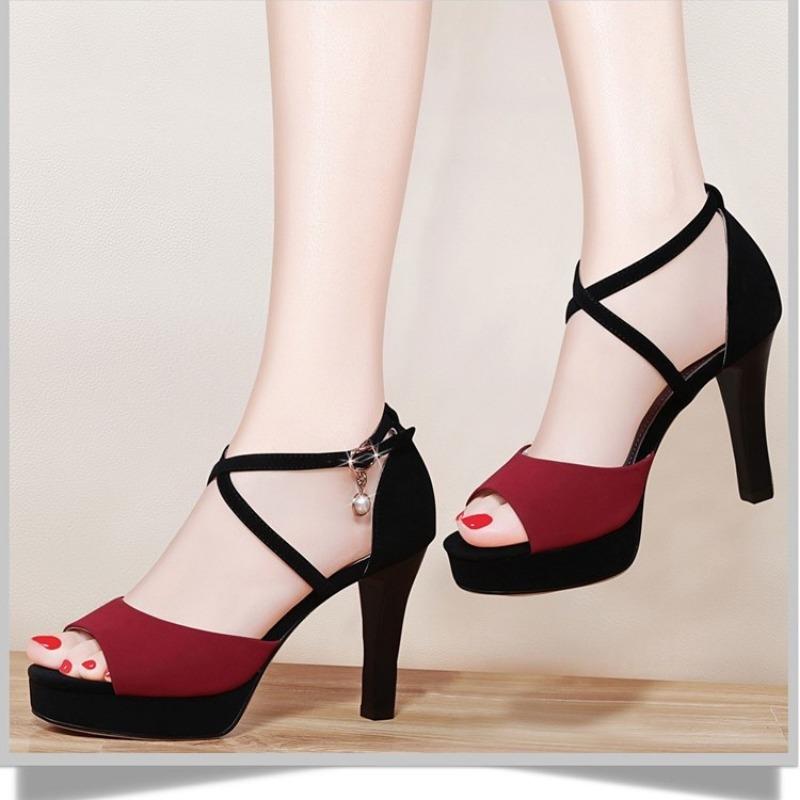 2024 Summer New Women High-heeled Sandals Korean Fish Mouth A Word Buckle Strap Casual Big Size Women Roman Shoes Pumps