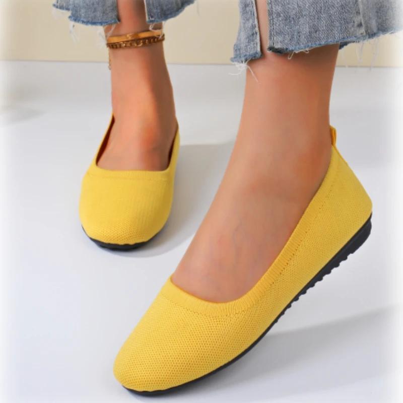 Women Round Toe Flat Shoes Casual Breathable Ballet Sneakers Women Solid Color Knitted Slip on Shoes Mesh Flat Loafers Woman