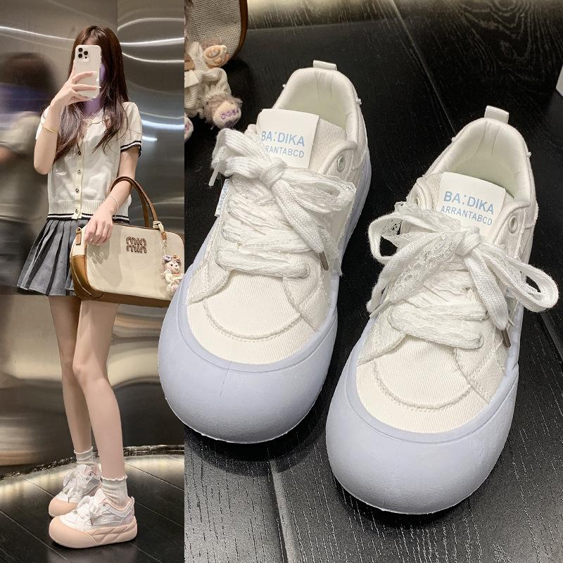 Korean board shoes women's 2025 new summer platform white shoes with skirts student niche bread shoes