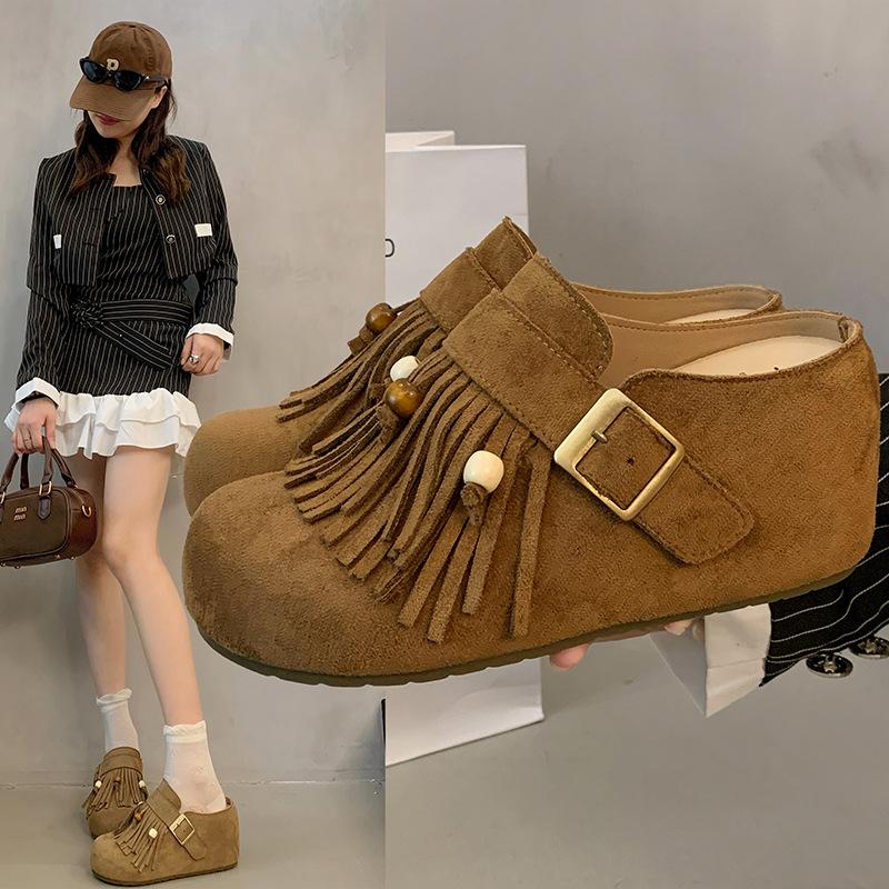 Sheepskin board~ Boken single shoes women's height increase 7CM new ugly and cute Muller one-pedal thick-soled retro baotou half slippers