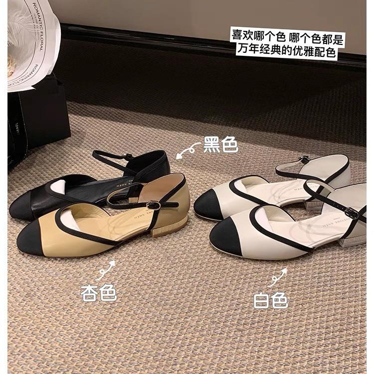 Jennifer the same style~ star Jin Jenny Xiaoxiangfeng soft leather color matching flat bottom hollow single shoes women commuting ol