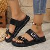 Za summer new product 2025 with empty women's shoes solid color buckle breathable round head flat bottom cool slippers