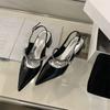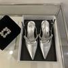Silver bag head thick heel sandals fairy style 2025 summer vintage Mary Jane shoes rhinestone pointed high heel shoes