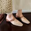 French woven hollow bag head sandals women's summer wear low heel word with Mary Jane Muller shoes empty half slippers