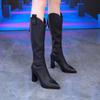 Brown knee high heel boots women's 2025 autumn and winter new pointed thick heel zipper fashion long tube boots