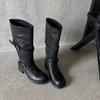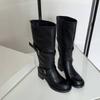 Autumn and winter women's large tube circumference Martin boots solid color medium heel large size women's boots versatile rubber platform co