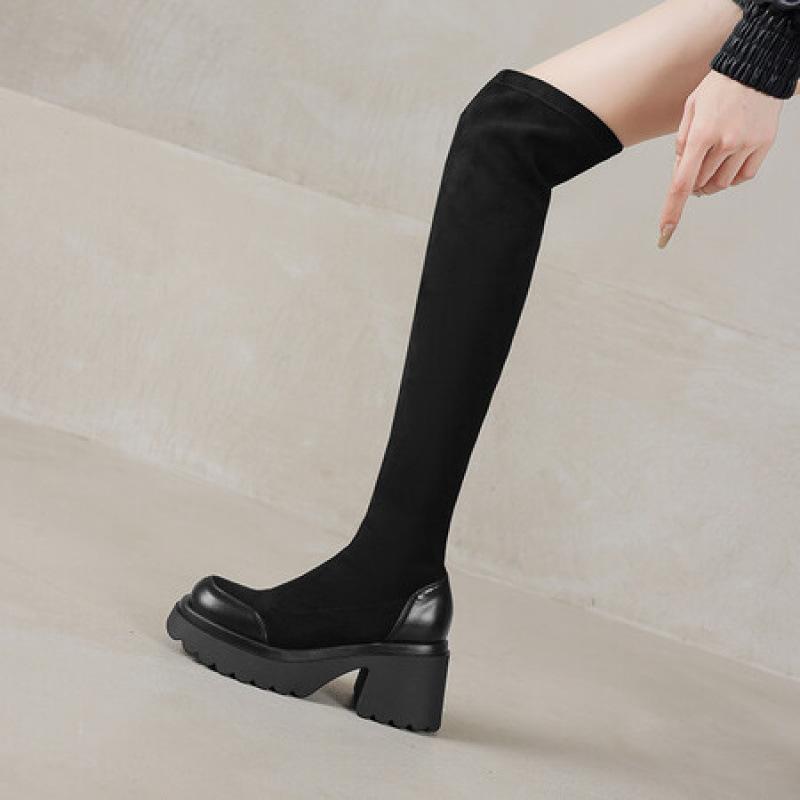 New stretch women's over-knee boots high heel comfortable thick-soled suede women's boots autumn and winter large size leather boots Martin boots wome
