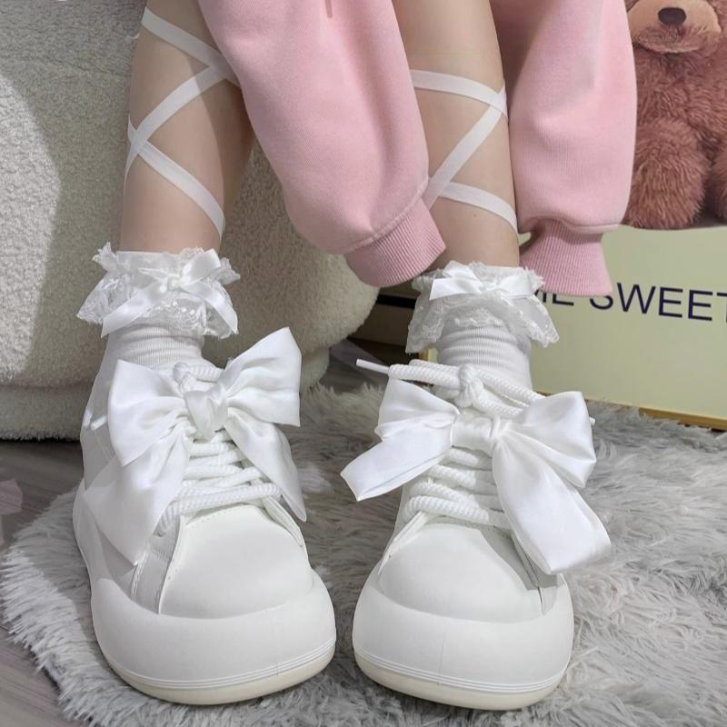 High value bow niche white shoes 2025 spring and autumn new fashion versatile casual thick baseplate shoes women