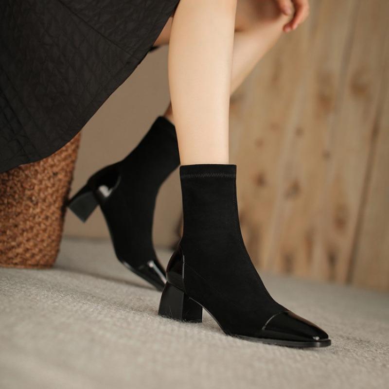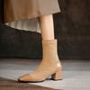 Autumn and winter Korean version suede women's Martin boots rubber sole medium boots women's medium heel large size leather boots square heel wo