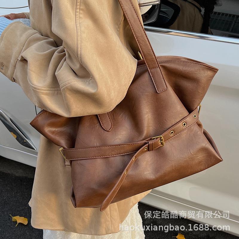 Retro bag women's large capacity 2025 new autumn and winter simple versatile shoulder bag premium texture commuter tote bag